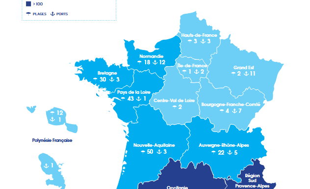 Cet été, 388 plages et 104 ports de plaisance pourront hisser le drapeau bleu. Ces 492 sites littoraux et continentaux œuvrent à l’échelle de leur territoire en faveur d’un tourisme plus respectueux de l’environnement, des écosystèmes et de la santé des êtres humains.